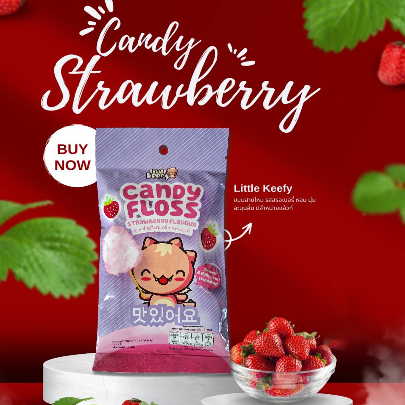 Little Keefy  Candy Floss Stawberry Flavour ขนมสายไหม กลิ่นสตรอว์เบอรี่ สายไหมนวัตกรรมใหม่ หอม นุ่ม ละมุนลิ้น